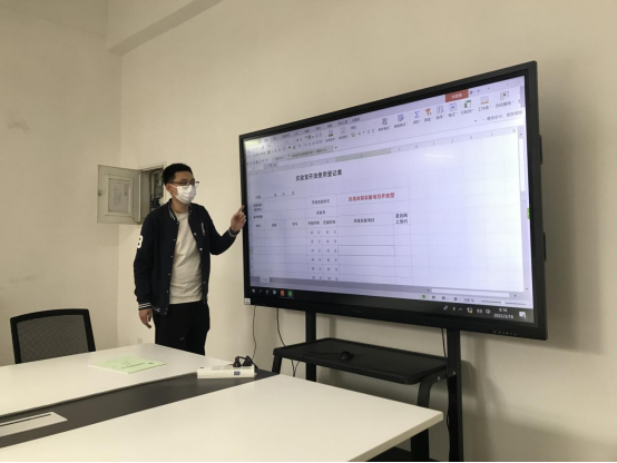 随后,谢明泽实验员阐释了有关实验室开放的问题,具体讲解了实验室开放使用登记表(绿本)的使用、填写的注意事项。