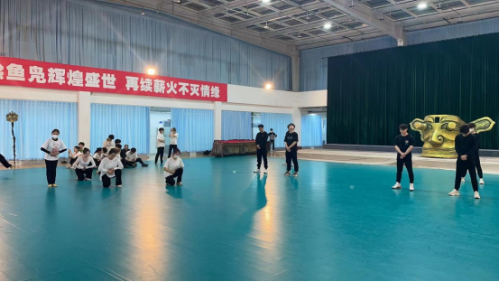 会后,各组针对相关问题进行了分组研讨,编导教师有序带领学生进行舞剧《鱼凫女王》的复排。