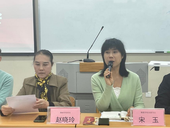 宋玉书记首先表示,各界领导都对舞剧给予高度认可,这是是所有人共同努力的结果;然后她希望专业课教师与辅导员教师之间加强沟通,切实做好学生管理工作;以及希望更多教师能加入党员队伍,更加严格要求自己,履行好教师的责任。