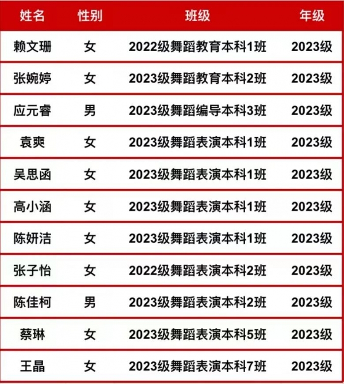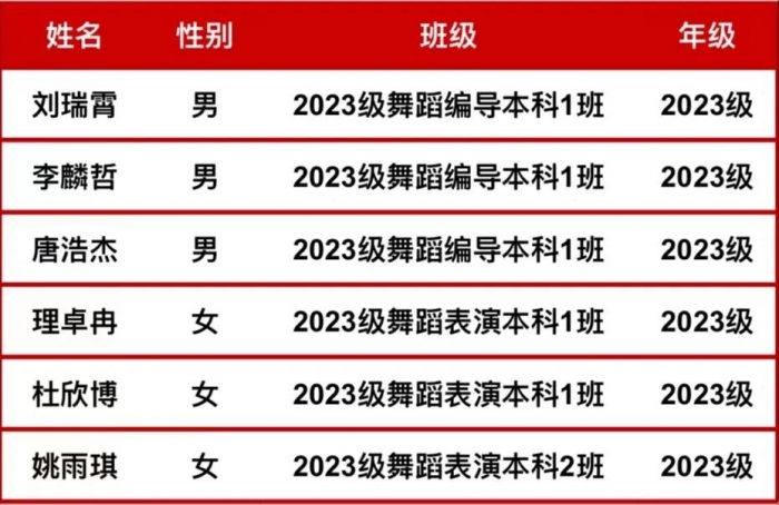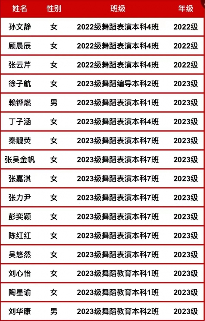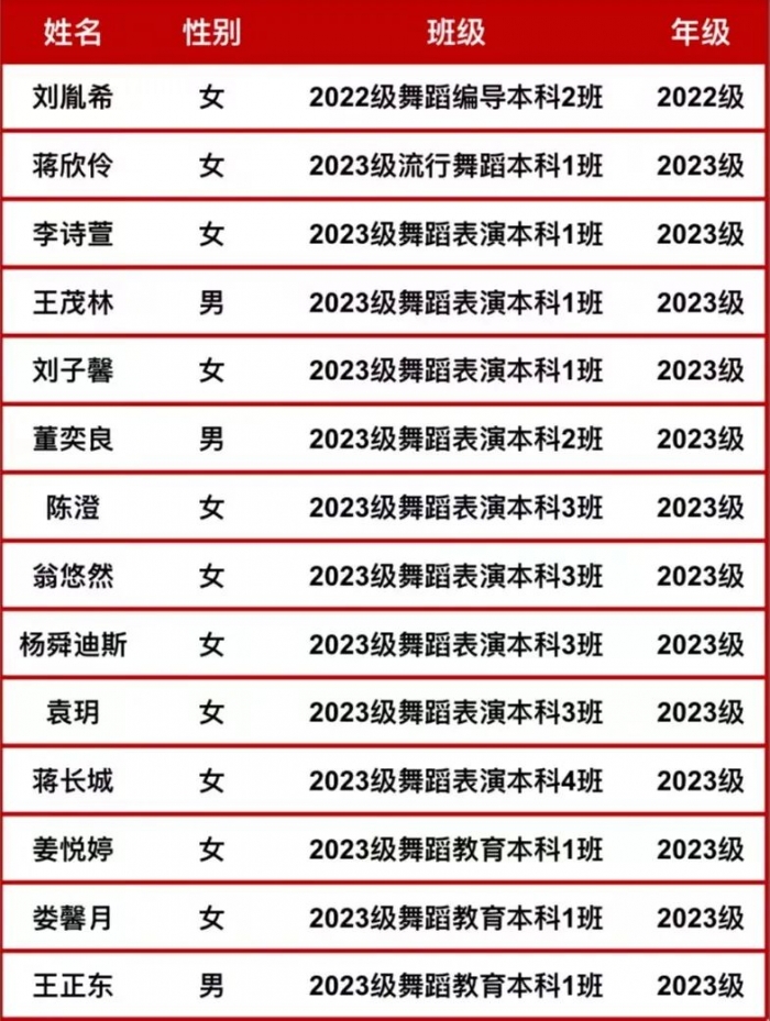 2023舞蹈学院团总支(学生会)招新面试通过名单录取名单