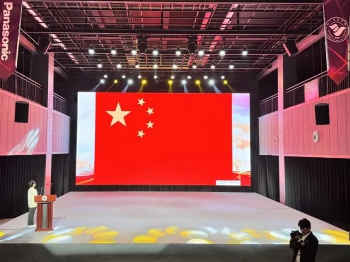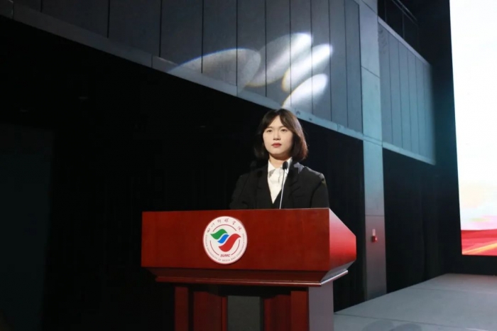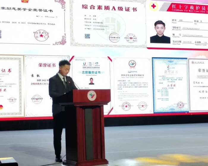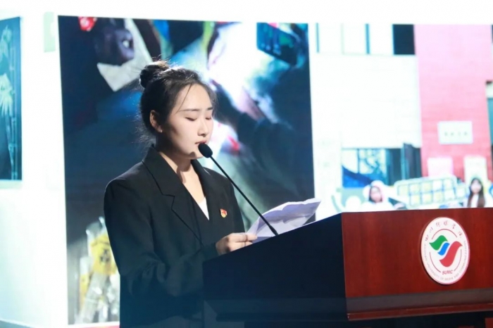 第四项:大运会志愿者代表施蕊同学上台发言。