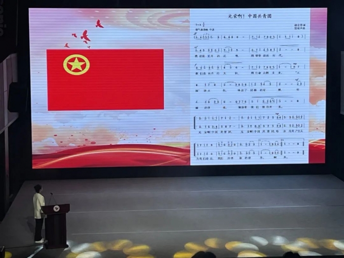 会议进行第八项:全体起立,奏唱共青团团歌。