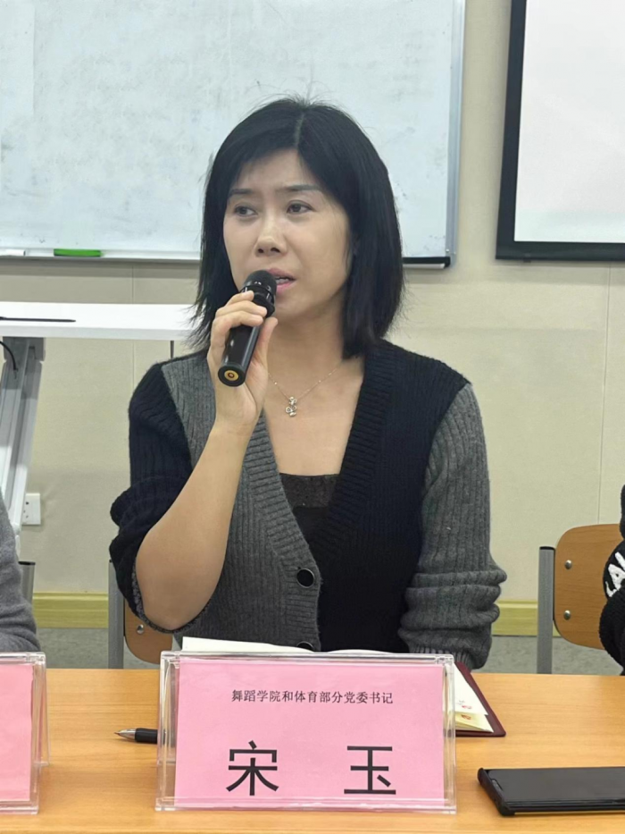 宋玉书记阐述了目前学校和学院的招生现状,并强调教师们应保持饱满的工作状态,严格遵守学校规章制度,努力塑造优良的教风。在校领导的支持以及赵晓玲院长的领导下,携手共进,实现共同发展;此外,宋书记还就舞蹈学院在2024年世界园艺博览会中的志愿者选拔及进一步的就业工作提出了要求,希望各方加强协作,推动就业率的提升;最后,宋书记鼓励还未入党的教师抓住机会,积极向党组织靠拢。