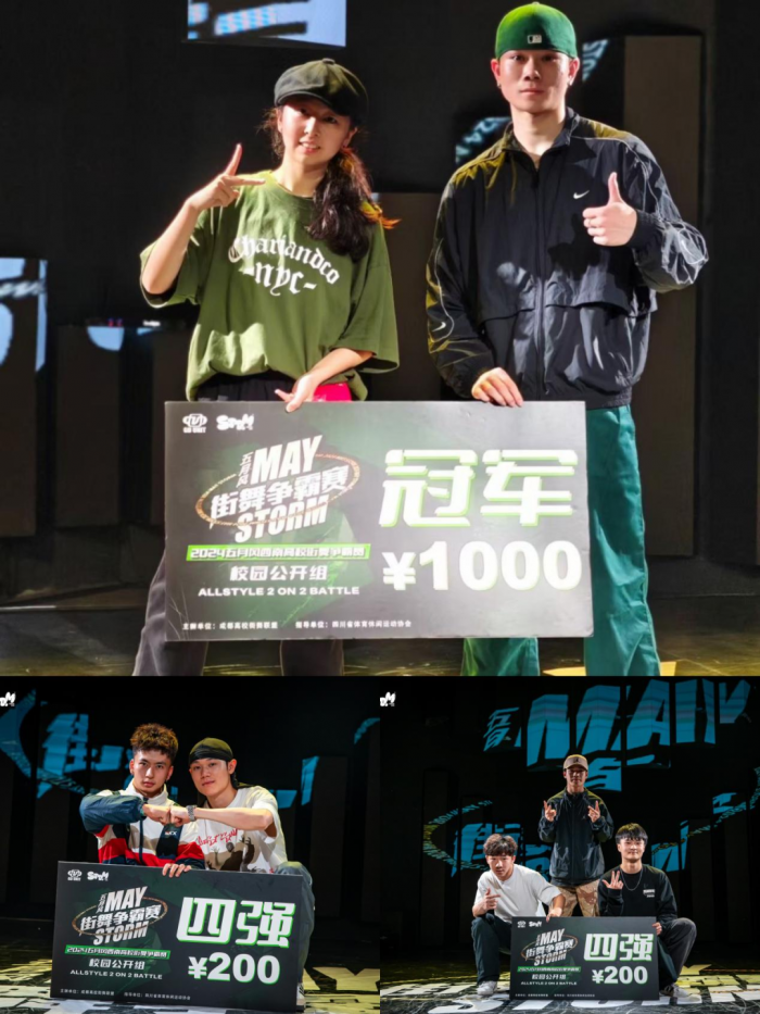 五月四日:Battle 2on2和Popping单项的赛事比拼。龚馨兰与俞善彬夺得了冠军,王蕴杰与池裕杰、杨依杭与郝孜阳进入了四强,谢坍婷与谢吕,倪奕天和马浩进入八强,王蕴杰与赵凤帝也进入到了十六强。