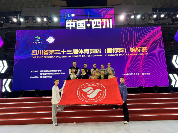 同时在5月2日-3日我校金鑫、王付浩两位体育舞蹈教师带领四川传媒学院体育舞蹈代表队15名学生参加由四川省社会体育指导中心、四川省体育舞蹈(国标舞)协会在成都地标建筑四川省体育馆举办的“四川省第三十三届体育舞蹈(国标舞)锦标赛。
