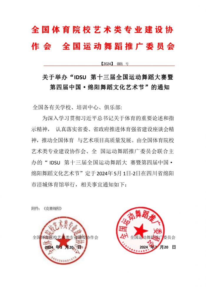 5月1日当天,由刘骏、李垭、吴漾薪三位体育舞蹈教师带领舞蹈学院2022级舞蹈表演专业体育舞蹈方向79名学生以训为练,在四川绵阳涪城体育馆由全国体育院校艺术类专业建设协作会、全国运动舞蹈推广委员会主办的IDSU第十三届全国运动舞蹈大赛(绵阳站)暨第四届中国·绵阳舞蹈文化艺术节中完成了《舞蹈风格性训练》的课程实践环节。