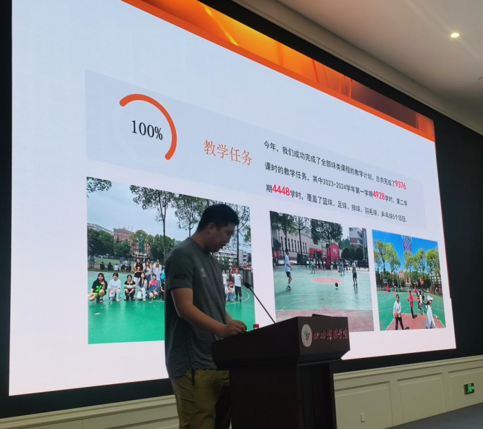 陈朝晖副主任对体育部教学大纲修订、师资队伍建设、科研学习及外出培训、领导干部听课制度、各代表队获奖、磨课教研活动、校内比赛、体质测试等工作的完成情况进行了系统的梳理和阐述。在复评整改工作的准备阶段,她提出了具有针对性的措施,并对相关资料的收集整理情况进行了全面的通报,以确保整个体育部工作的规范性和高效性。