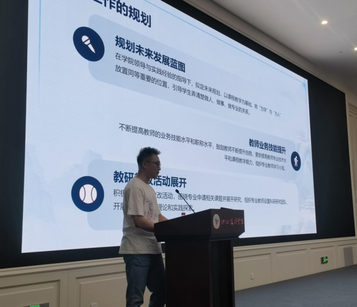 蒋嘉陵副院长就课程设置与优化、教学方法创新、师资队伍建设以及学生活动等多个方面,进行了全面而深入的阐述,并提出了相应的改进策略。在课程设置与优化方面,各专业已依据学校指导原则,制定了2024级人才培养方案,并增设了专家论证环节,以确保培养方案的科学性与合理性。同时,他强调了对精品课程与在线教学资源的进一步强化与完善。在教学方法创新上,本学期已成功实施2022届学生的专业实践活动,他建议未来应充分利用现有的实践教学基地资源,强化与实践单位的沟通交流,进一步完善实习实践计划,使之逐步规范化。此外,他亦倡导发展线上线下相结合的混合教学模式。在师资队伍建设方面,他鼓励教师积极利用各类资源进行自我提升,踊跃参与学术交流活动,并对最新的职称申报材料进行了详细解读,教师应根据个人情况准备相关材料。在学生活动层面,运动会、毕业教学汇报演出以及“春华秋实”校级品牌项目系列演出等活动均圆满落幕,他同时提醒各位教师,在带领学生参加各类比赛时,应审慎选择,确保赛事的认可度和价值。此外,他强调各位教师应积极提升学习意识,持续与学生保持有效沟通,确保紧跟时代步伐,主动学习和掌握AIGC技术。最后,期望在赵晓玲院长的正确引领下,各位教师能够顺利、高效地完成下一学年的各项工作任务。