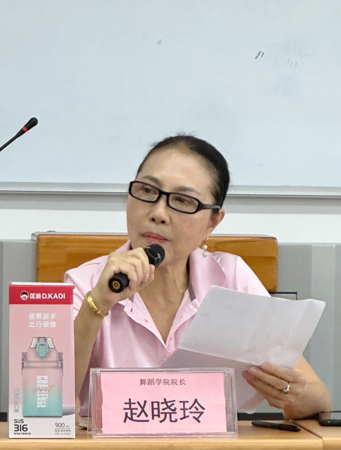 赵晓玲院长首先对教师们在开学前的各项准备工作进行了部署和要求,包括教学资料的准备、论文指导教师相关材料的上传以及各专业评估文件材料的收集等。同时,她通报了本年度的招生情况,在当前招生形势较为严峻的背景下,舞蹈学院的招生分数和人数相较于往年有所提升,这反映了学院教学质量的持续提高,这得益于每位教师的不懈努力。她希望各位教师能够针对新政策下的招生生源,灵活调整教学策略,实现因材施教。此外,赵院长还对“春华秋实”系列教学成果展演的时间进行了安排,并期望每个节目在艺术总监的指导下确保质量。她鼓励教师们紧跟学校政策,努力提升职称,不断深造学习,同时强化职业操守,树立规则意识。同时,她提醒各位教师,特别是公体教师,在近期高温天气下,行课时需关注学生身体状况,灵活调整教学计划。在学生干部选拔方面,她强调不仅要注重组织沟通能力,更要重视其专业水平,选拔出德智体美劳全面发展的学生干部。