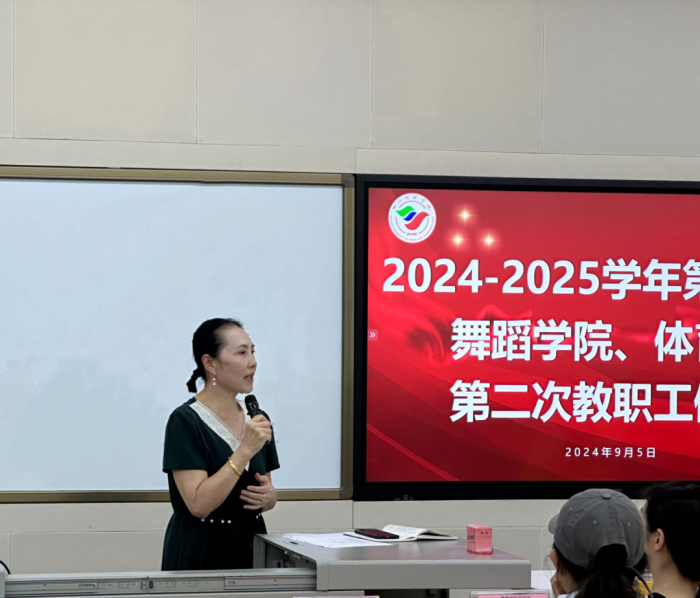 2024年9月5日18:30,舞蹈学院、体育部在西区2A07-403召开2024-2025学年第一学期第二次全体教职工例会,舞蹈学院院长赵晓玲、舞蹈学院和体育部分党委书记宋玉、舞蹈学院艺术总监范和平、舞蹈学院副院长蒋嘉陵、舞蹈学院副院长李立婧、舞蹈学院副院长程瑾、舞蹈学院和体育部分党委副书记、体育部副主任陈朝晖及全体教职工参加此次会议。会议由赵晓玲主持。