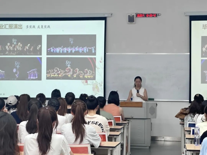 赵晓玲院长介绍了舞蹈学院的培养方案、专业方向,专业水平等。让同学们注重自己未来的职业发展规划;同时对于2024级的新生寄予厚望,鼓励同学们在大学期间勤能补拙,让自己的大学生活变得更加充实、有意义。
