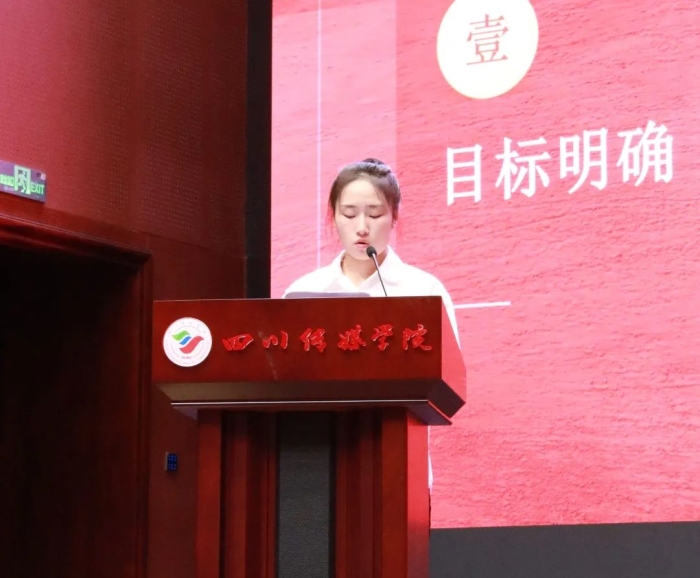 新生代表牛杰立同学,怀揣着梦想与憧憬,对大学生活作出清晰的规划,同时号召同学们共同努力,共同进步。