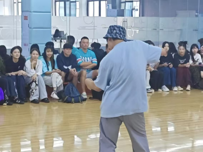下午两点,入学专业展示活动在西区A6-501举行。该展示活动由两个部分构成,包括个人独舞展示和小组即兴表演。学生们参与热情高涨,提前体验到了大学流行舞蹈课堂的氛围。