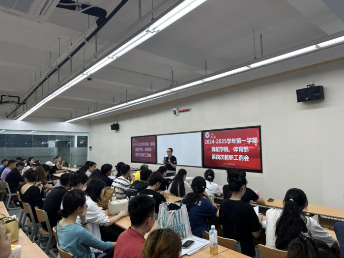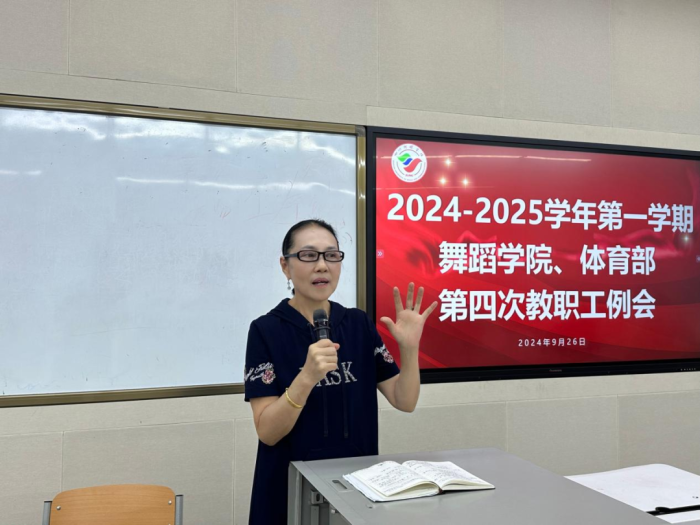 2024年9月26日18:30,舞蹈学院、体育部在西区2A07-403召开2024-2025学年第一学期第四次全体教职工例会,舞蹈学院院长赵晓玲、舞蹈学院和体育部分党委书记宋玉、舞蹈学院艺术总监范和平、舞蹈学院副院长李立婧、舞蹈学院副院长程瑾、舞蹈学院和体育部分党委副书记、体育部副主任陈朝晖、舞蹈学院和体育部分党委副书记杨用及全体教职工参加此次会议。会议由赵晓玲主持。