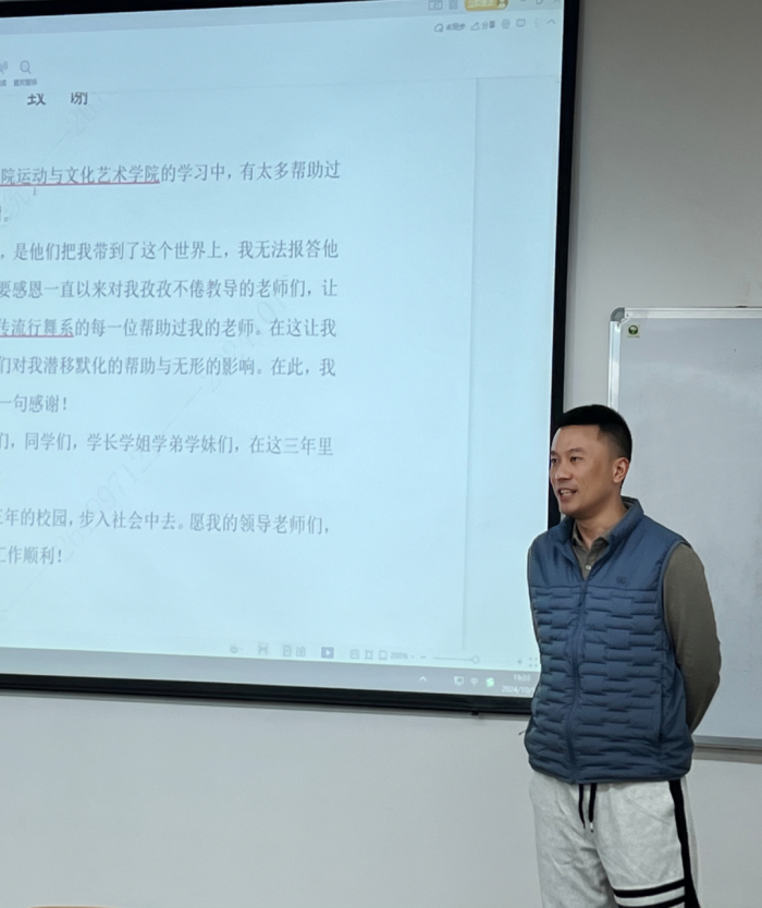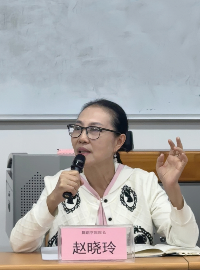 赵晓玲院长对教师团队提出了严格的要求,强调了专业技能的持续提升以及与学生沟通技巧的重要性。她对论文审查流程中的关键问题进行了阐释,并期望新任指导教师需恪尽职守,确保指导工作的有效性。同时,赵院长通报了我院精心策划的“校级校办”校园文化活动——2023-2024学年教学成果展“春华秋实”所赢得的广泛赞誉与正面反馈。她特别对在四川省第六届青年舞蹈展演中,成功入围终评的教师及其作品给予了高度评价与表扬。这两位教师分别是凭借作品《提灯·1921》脱颖而出的程浩楠老师,以及携手呈现作品《书意归》的朱冬梅与倪可老师。赵院长进一步勉励全体教职员工,在艺术总监的指导下,持续深耕原创作品的开发与精进。
