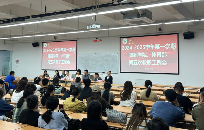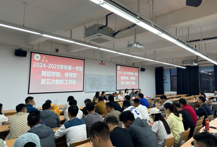 2024年10月17日18:30,舞蹈学院、体育部在西区2A07-408召开2024-2025学年第一学期第五次全体教职工例会,舞蹈学院院长赵晓玲、舞蹈学院和体育部分党委书记宋玉、舞蹈学院艺术总监范和平、舞蹈学院副院长蒋嘉陵、舞蹈学院副院长李立婧、舞蹈学院副院长程瑾、舞蹈学院和体育部分党委副书记、体育部副主任陈朝晖、舞蹈学院和体育部分党委副书记杨用及全体教职工参加此次会议。会议由赵晓玲主持。