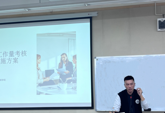 蒋嘉陵副院长对教学材料的整改完善工作进行了详尽的安排与阐释,针对各类资料明确提出了相应的标准与改进举措。同时,他就教学工作量考核实施方案的具体内容进行了详细说明。此外,蒋嘉陵副院长还就教学创新大赛的相关事宜进行了阐述,并勉励教师们踊跃参与。