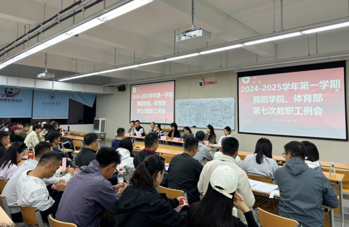 2024年10月31日18:30,舞蹈学院、体育部在西区2A07-401召开2024-2025学年第一学期第七次全体教职工例会,舞蹈学院院长赵晓玲、舞蹈学院和体育部分党委书记宋玉、舞蹈学院艺术总监范和平、舞蹈学院副院长蒋嘉陵、舞蹈学院副院长李立婧、舞蹈学院副院长程瑾、舞蹈学院和体育部分党委副书记、体育部副主任陈朝晖、舞蹈学院和体育部分党委副书记杨用及全体教职工参加此次会议。会议由赵晓玲院长主持。