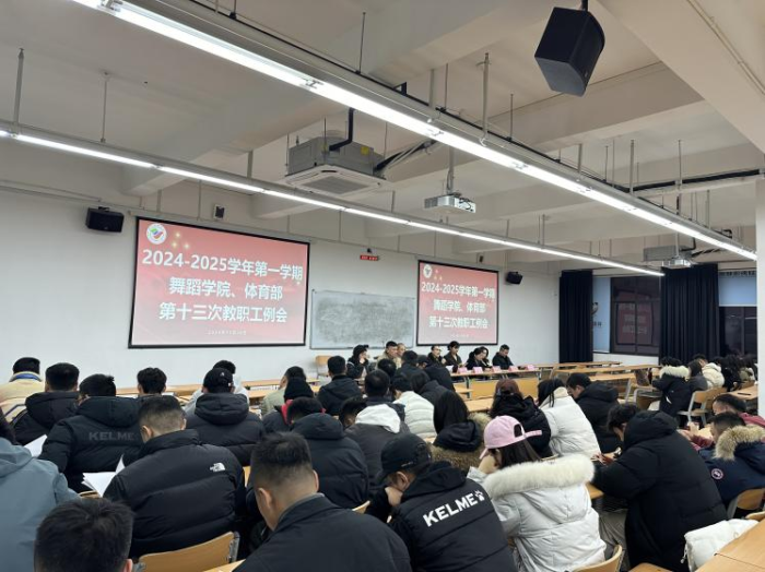 2024年12月26日18:30,舞蹈学院、体育部在西区2A07-408召开2024-2025学年第一学期第十三次全体教职工例会,舞蹈学院院长赵晓玲、舞蹈学院和体育部分党委书记宋玉、舞蹈学院艺术总监范和平、舞蹈学院副院长蒋嘉陵、舞蹈学院副院长程瑾、舞蹈学院和体育部分党委副书记、体育部副主任陈朝晖、舞蹈学院和体育部分党委副书记杨用及全体教职工参加此次会议。会议由赵晓玲院长主持。