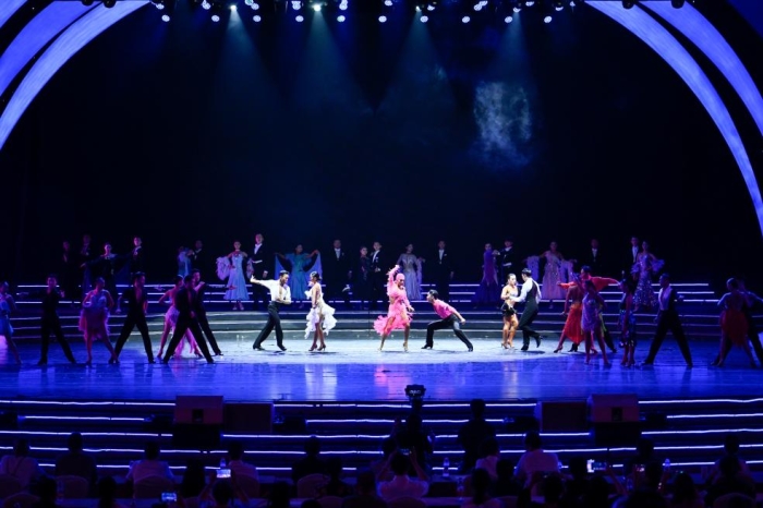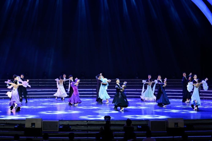 开场舞以舞蹈表演《体育舞蹈方向》专业的独特竞技队列和舞者对抗赛形式启幕。力与美教融的舞姿将体育舞蹈的音乐演绎得淋漓尽致,璀璨飞旋的舞群尽显体育舞蹈的华贵与精致。