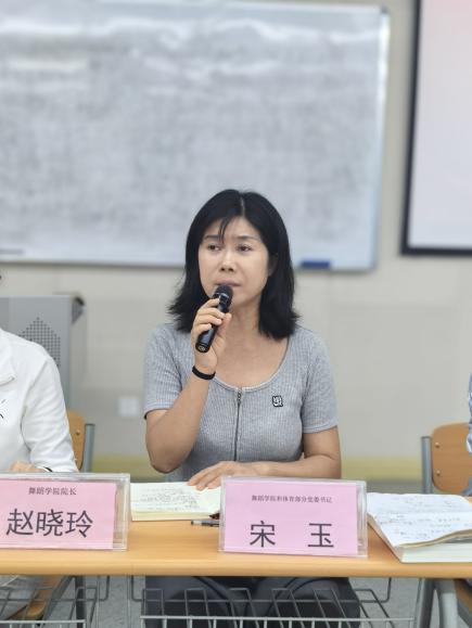 首先,赵院长通报了开学以来的教学检查情况,并敦促全体教师严谨对待课前准备、课堂教学及课后教室维护等各环节,确保教学质量。其次,她通报了“春华秋实”教学成果展演的排练进展与后续安排,对所有台前幕后辛勤付出的各位教师表示衷心感谢。针对昨日教师节表彰活动,赵院长希望受表彰的教师珍惜荣誉,再接再厉;同时鼓励全体教师以此为契机,恪守师德规范,积极投身课题研究、学历提升、学习培训等,实现自我成长。最后,赵院长还就全校体能测试工作进行了说明,要求公共体育课教师周密组织,确保测试安全、高效、有序完成。